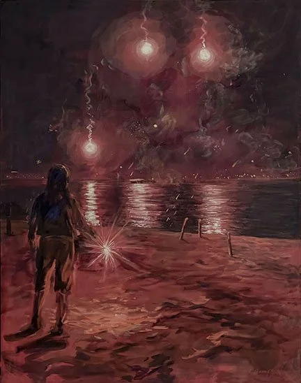 By The Rockets Red Glare, July 4th Bayville, 1992, Oil on Canvas, 48” x 38”